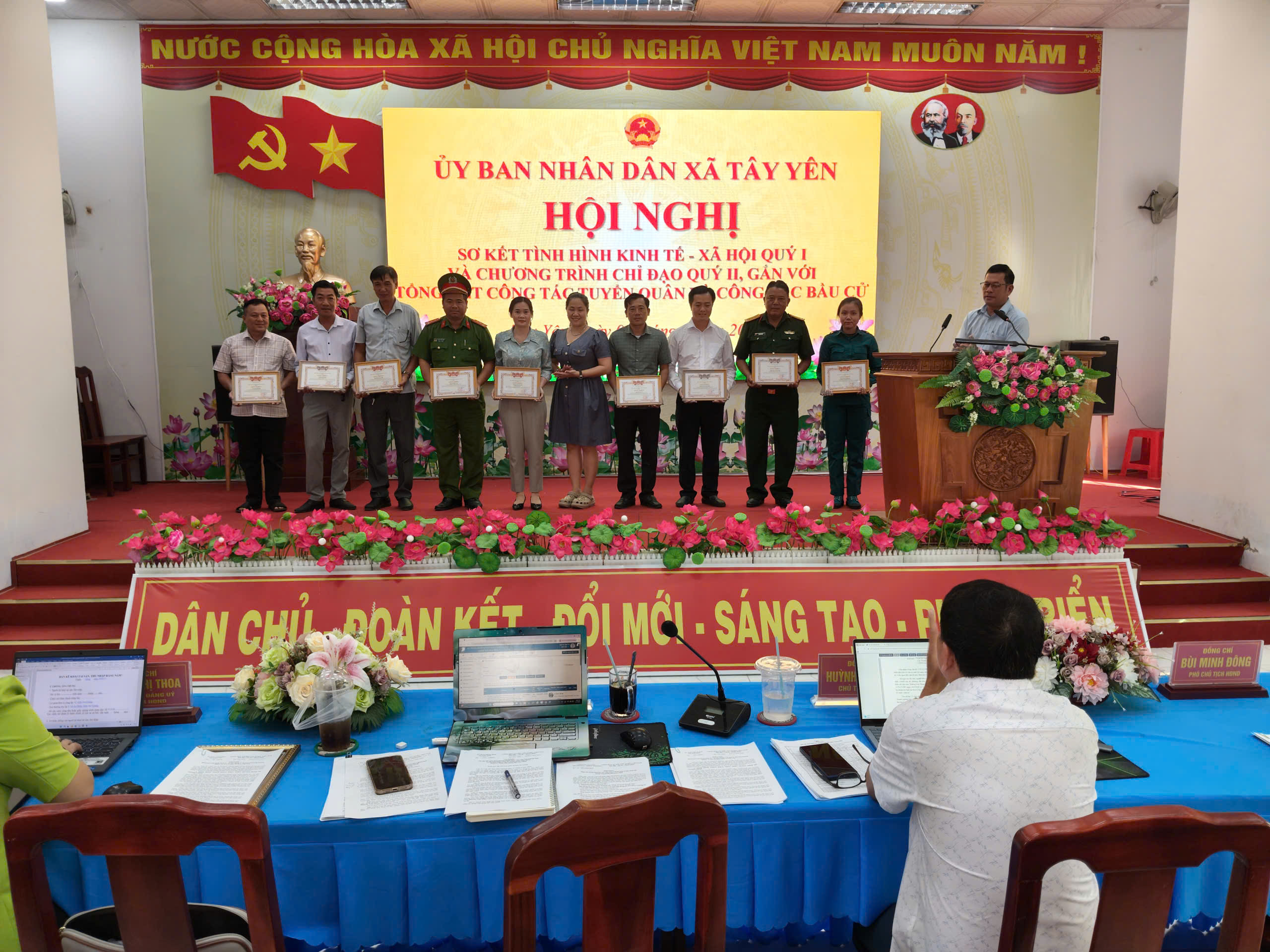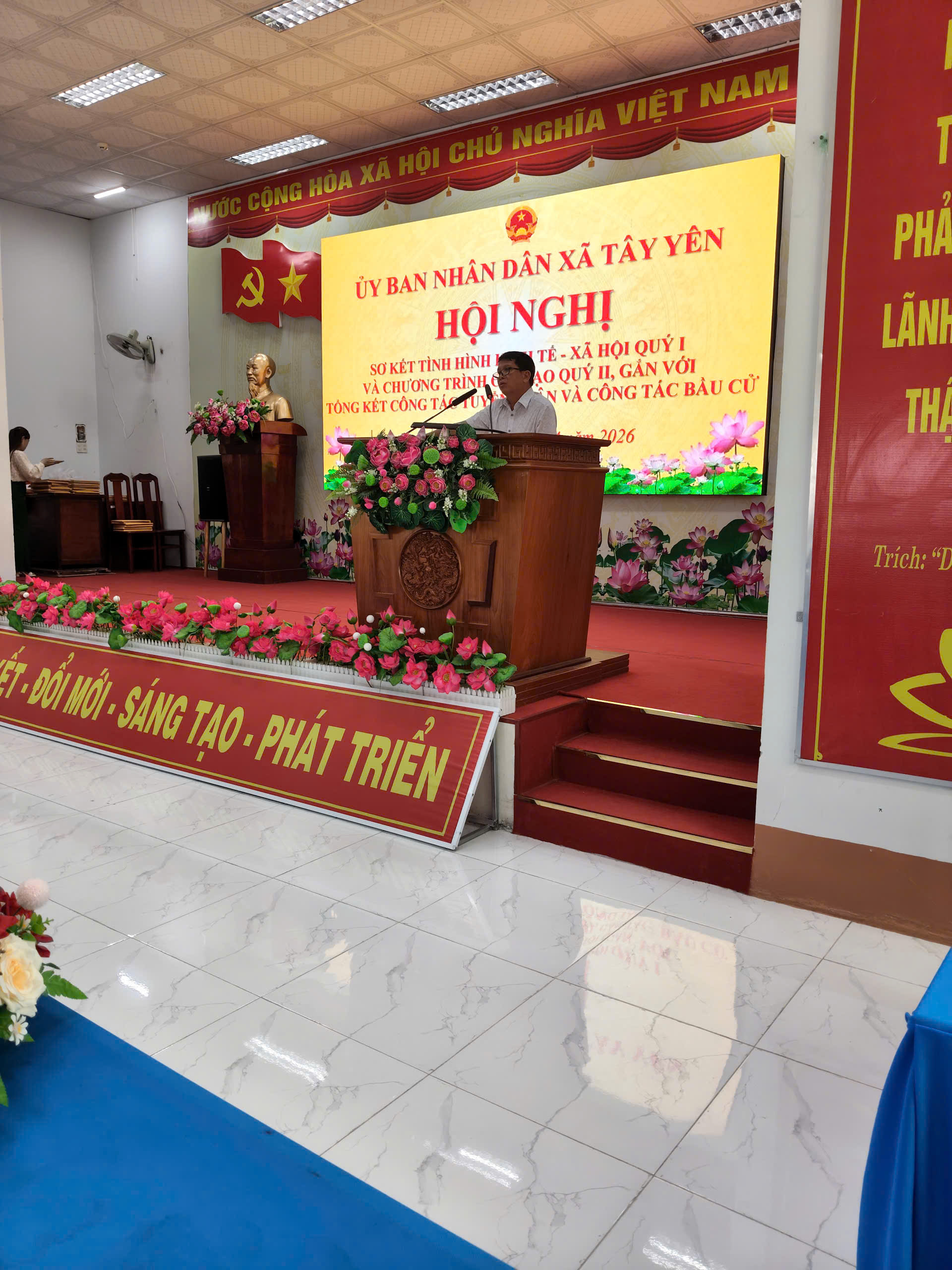 Vừa qua, Ủy ban nhân dân xã Tây Yên đã tổ chức Hội nghị sơ kết công tác quý I, triển khai phương hướng, nhiệm vụ quý II năm 2026; đồng thời tổng kết công tác tuyển chọn và gọi công dân nhập ngũ năm 2026 và tổng kết cuộc bầu cử đại biểu Quốc hội khóa XVI, đại biểu Hội đồng nhân dân các cấp nhiệm kỳ 2026 – 2031